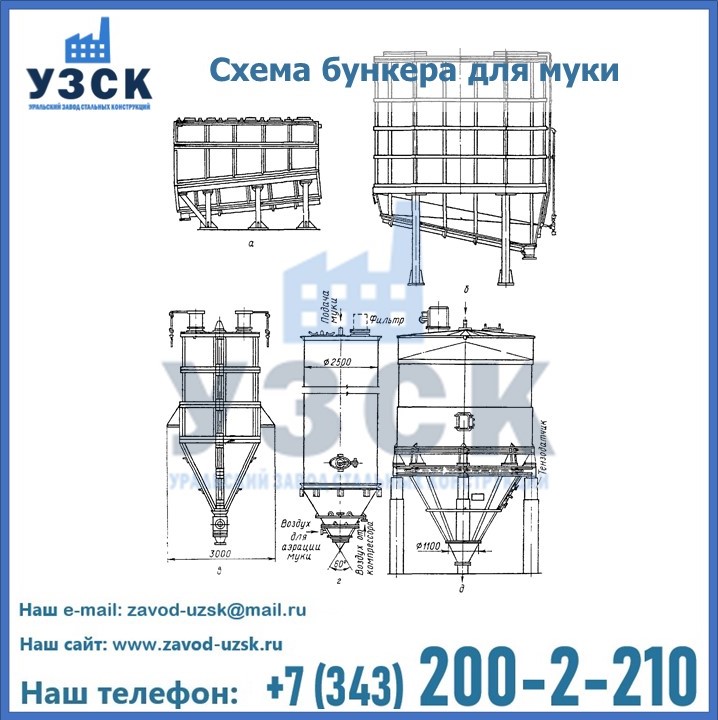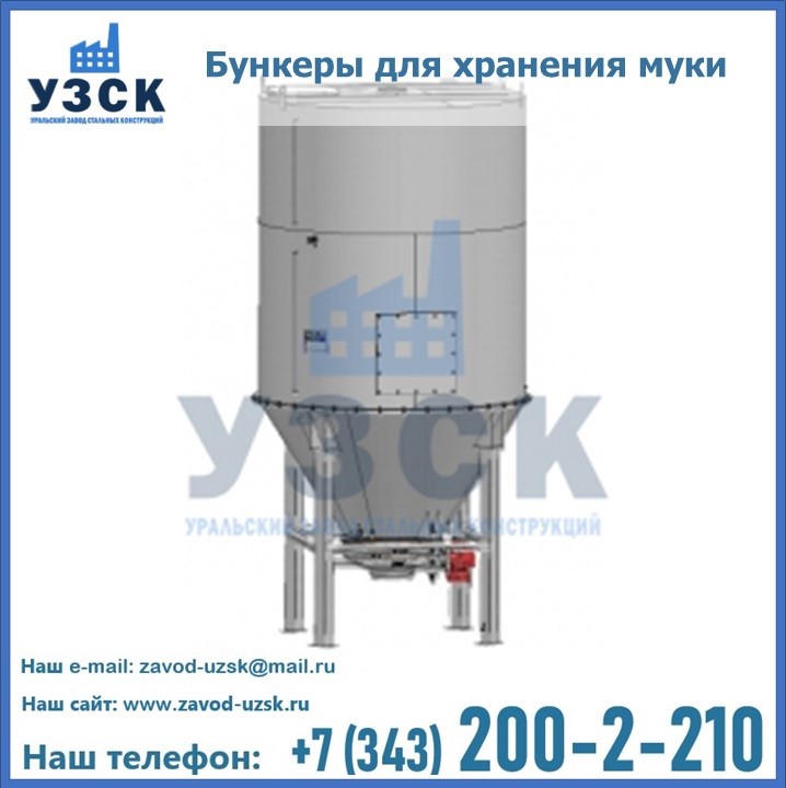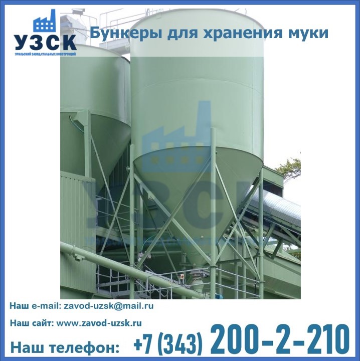 Завод «УЗСК» в Уфе проектирует, производит и поставляет целевое оборудование, в том числе, бункеры для хранения муки и прочих сыпучих материалов.
