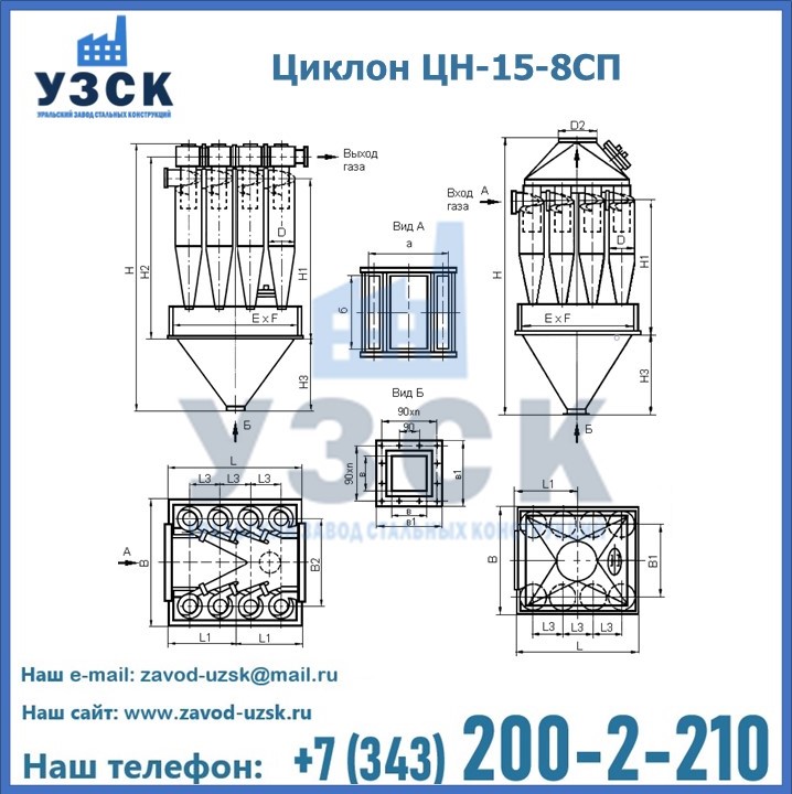 Завод «УЗСК» в Уфе предлагает большой выбор циклонов ЦН-15-500×8СП и прочих устройств, полностью укомплектованных и готовых к эксплуатации. Мы гарантируем соответствие оборудования всем требованиям ГОСТ и ТУ, износостойкость и высокую производительность предлагаемого оборудования. Уральский Завод Стальных Конструкций изготавливает и продает надежное, эффективное и производительное оборудование, имеющее длительную гарантию и большой эксплуатационный ресурс. Если требуется изготовить циклон нестандартных размеров, то такой вариант выполнения заказа тоже предусмотрен, так как предприятие имеет собственные производственные площади и надежных поставщиков. На все поставляемое или производимое оборудование имеются чертежи и прочая техническая документация. Заказать и купить циклоны или прочее оборудование высокого качества и по доступной цене можно через наш сайт или по указанному в разделе