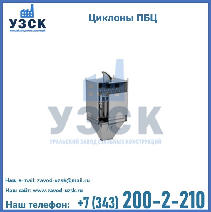 Завод «УЗСК» в Уфе предлагает приобрести циклоны ПБЦ и прочие устройства, полностью укомплектованные и готовые к эксплуатации. Мы гарантируем соответствие оборудования всем требованиям ГОСТ и ТУ, износостойкость и высокую производительность предлагаемого оборудования. Уральский Завод Стальных Конструкций изготавливает и продает надежное, эффективное и производительное оборудование, имеющее длительную гарантию и большой эксплуатационный ресурс. Если требуется изготовить циклон нестандартных размеров, то такой вариант выполнения заказа тоже предусмотрен, так как предприятие имеет собственные производственные площади и надежных поставщиков. На все поставляемое или производимое оборудование имеются чертежи и прочая техническая документация. Заказать и купить циклоны или прочее оборудование высокого качества и по доступной цене можно через наш сайт или по указанному в разделе «Контакты» телефону.