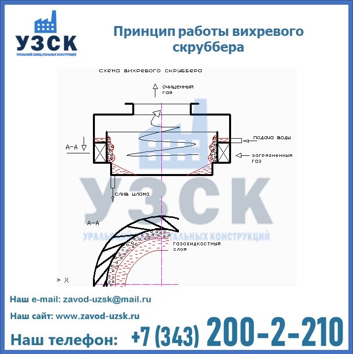 Вихревой скруббер типа ВС – разновидность оборудования, предназначенного для организации и упорядочивания теплообменных процессов. Представляет собой центробежно-барботажный аппарат, применяемый в качестве пылеуловителя (для «мокрого» способа очистки газовоздушных потоков от пыли), абсорбера, теплообменника контактного типа. В область применения данного устройства входят такие сферы промышленности в Уфе, как химпром, пищепром, металлургия.