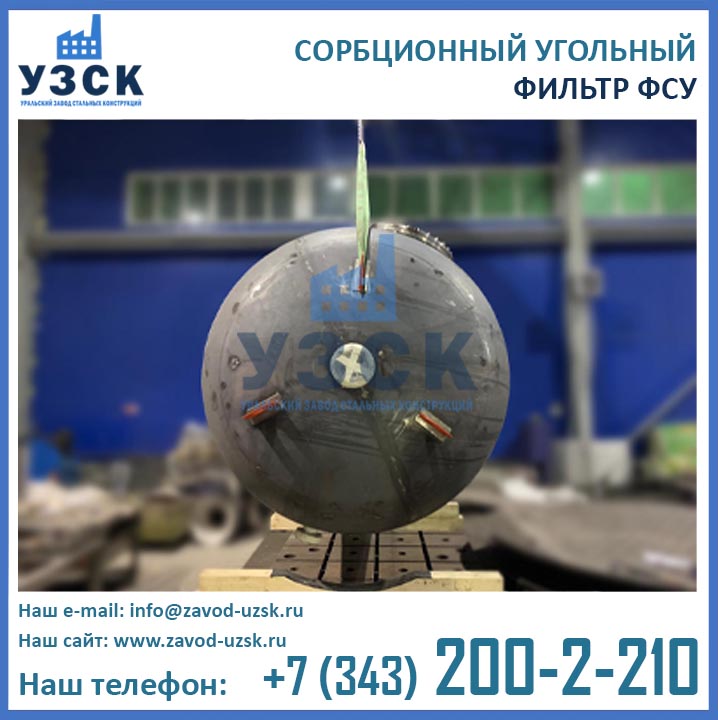 Качественную работу отопительных и промышленных котельных, линий по очистке конденсата и природных вод, электростанций обеспечивает фильтр сорбционный угольный типа ФСУ — вертикальный сосуд с одной камерой цилиндрической формы. Основное назначение оборудования состоит в глубокой очистке возвращаемого с производства конденсата от запахов, органических загрязнений и привкусов. Использование ФСУ в системах водоподготовки гарантирует очищение субстанции от масел, органических примесей, остатков нефтепродуктов до нормального значения — 0.52-1.0 мг/л. Купить в Уфе угольные фильтры предлагает наш Уральский завод стальных конструкций. Мы выполняем производство ФСУ под нужды предприятия, возможно изготовление сорбционных фильтров ФСУ из нержавеющей стали включая корпус и внутренние устройства.